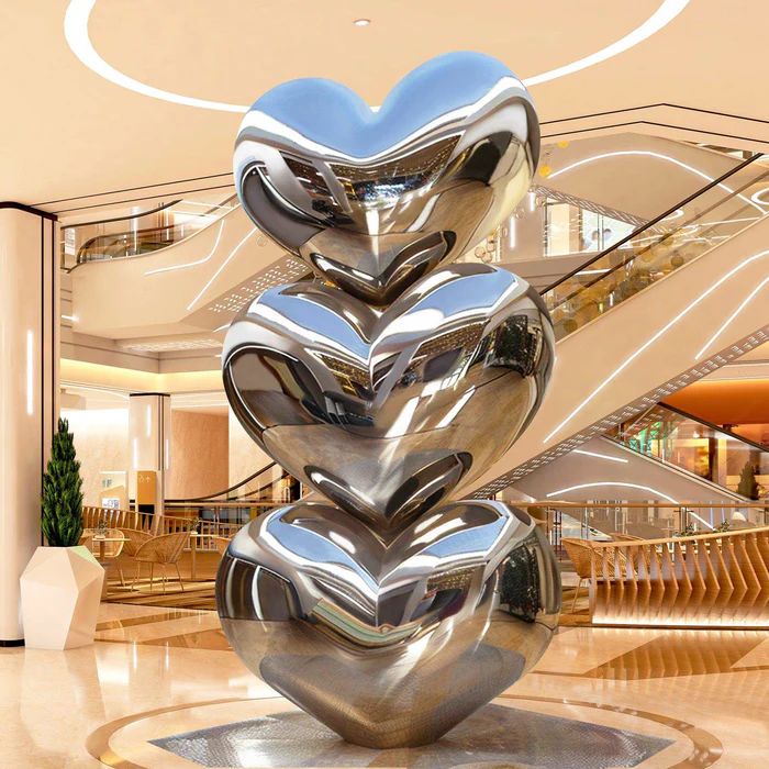 Το γλυπτό από ανοξείδωτο χάλυβα είναι ένα εκπληκτικό έργο τέχνης σχεδιασμένο για να αναβαθμίσει τις διακοσμήσεις των ξενοδοχείων.Αυτό το γλυπτό έχει στοιβαγμένα σχήματα καρδιών που συμβολίζουν την αγάπη και την κομψότητα.Αυτό το γλυπτό είναι ιδανικό για να προσθέσει μια πινελιά εκλεπτυσμό και γοητεία στους χώρους του ξενοδοχείου.και άλλους κοινούς χώρους, καθιστώντας το εστιατόριο για τους επισκέπτες.
