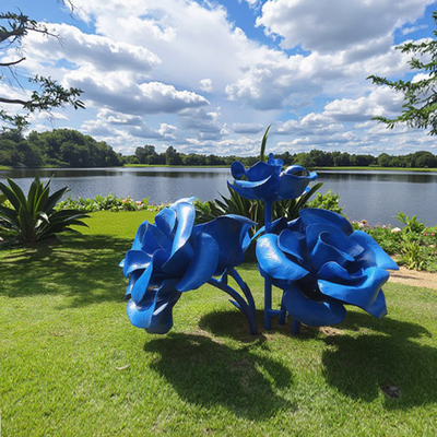 Αυτά τα μεγάλα ζωγραφισμένα μπλε γλυπτά των τριαντάφυλλων είναι ένα εκπληκτικό συνδυασμό τέχνης και φύσης.Η φωτεινή μπλε απόχρωση φέρνει μια πινελιά φαντασίας και ζωντάνιας, μετατρέποντας τον κήπο σε έναν καλλιτεχνικό παράδεισο όπου οι άνθρωποι μπορούν να εκτιμήσουν την ομορφιά τόσο της τέχνης όσο και του φυσικού περιβάλλοντος..