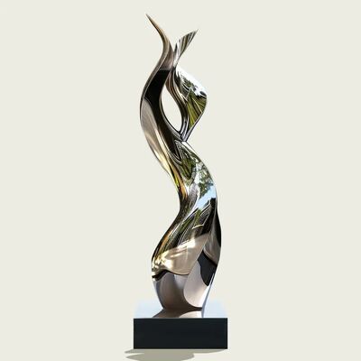 Ένα Υπαίθριο Γλυπτό από Ανοξείδωτο Ατσάλι με Φινίρισμα Καθρέφτη είναι ένα μοντέρνο, καλλιτεχνικό κομμάτι κατασκευασμένο από υψηλής ποιότητας ανοξείδωτο ατσάλι, σχεδιασμένο να αντέχει στις καιρικές συνθήκες διατηρώντας παράλληλα μια κομψή και ανακλαστική επιφάνεια. Το φινίρισμα καθρέφτη δίνει στο γλυπτό μια γυαλισμένη, λαμπερή εμφάνιση, επιτρέποντάς του να αντανακλά το περιβάλλον του και να αλληλεπιδρά με το φυσικό φως με δυναμικούς τρόπους. Συχνά τοποθετημένα σε εξωτερικούς χώρους, όπως κήπους, πάρκα ή δημόσιους χώρους, αυτά τα γλυπτά δεν είναι μόνο ανθεκτικά, αλλά χρησιμεύουν και ως εντυπωσιακά κεντρικά σημεία που προσθέτουν μια πινελιά σύγχρονης κομψότητας σε οποιοδήποτε περιβάλλον. Η λεία, ανακλαστική επιφάνεια ενισχύει την οπτική γοητεία του γλυπτού, δημιουργώντας μια ενδιαφέρουσα αλληλεπίδραση μεταξύ του έργου τέχνης και του μεταβαλλόμενου φωτός, του καιρού και της ατμόσφαιρας του εξωτερικού χώρου.