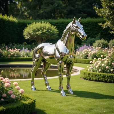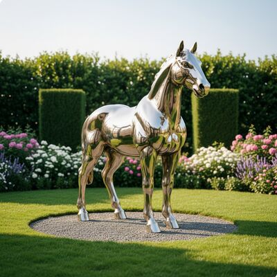 | Όνομα προϊόντος | Γλυπτό ίππου από ανοξείδωτο χάλυβα σε φυσικό μέγεθος για εξωτερικούς χώρους, γυαλισμένο σαν καθρέφτης, μεταλλική τέχνη για διακόσμηση κήπου/πάρκου |
